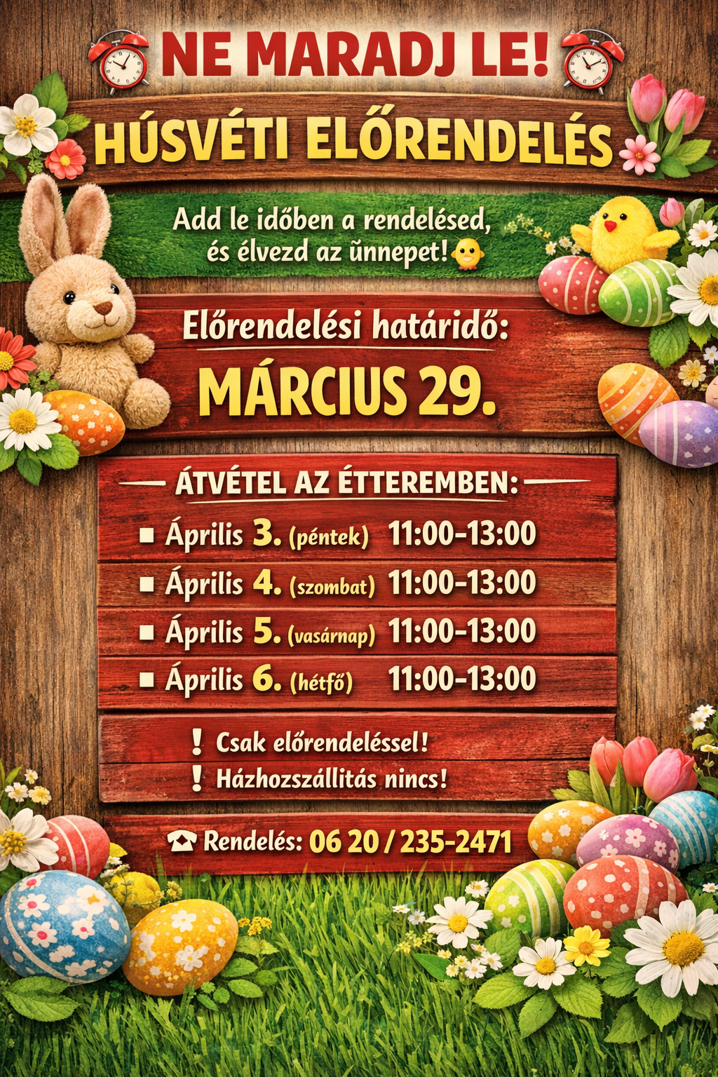 Rendeléseiket gondosan, frissen készítjük el. Várjuk megtisztelő megrendelésüket!
